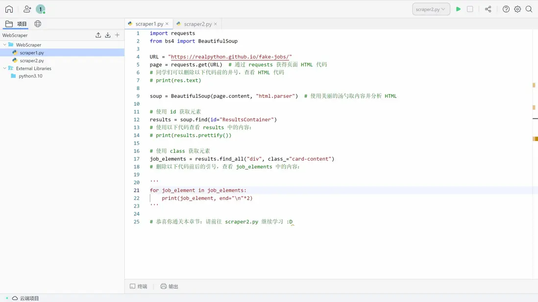 在法律允許的範圍內,學習使用 Python 實現自動化爬蟲能讓大家在資訊紛雜的網絡世界中,快速地收集自己所需的資料。這篇文章將通過虛構的求職網站 Fake Python 以及使用 Lightly IDE 展示完整的項目代碼,引導大家在無需安裝第三方軟件的情況下,動手在瀏覽器中編寫代碼,瞭解 Python 爬蟲。