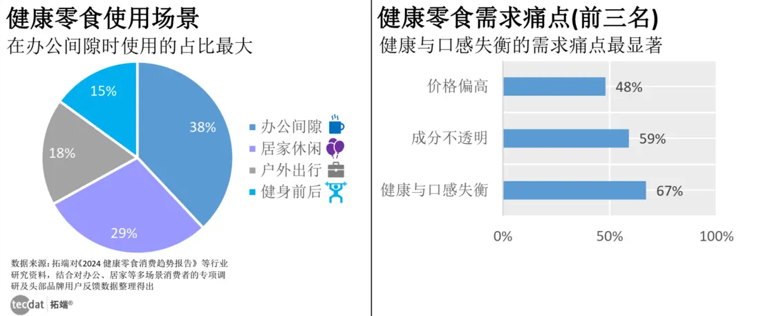 - 需求痛點:67%消費者反饋“健康與口感失衡(口感粗糙)”,59%擔心“成分宣傳與實際不符”,48%認為“價格比傳統零食高30%以上,性價比不足”;