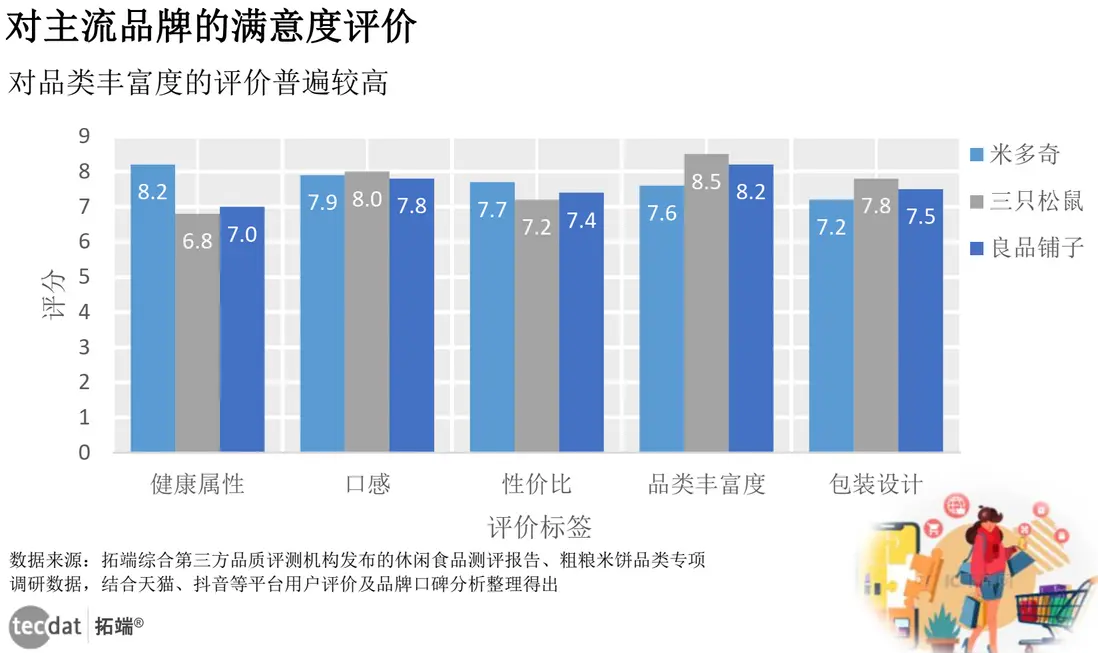 從第三方測評與用户反饋來看,主流品牌各有優勢:部分品牌聚焦“產品核心體驗”(健康屬性、口感、性價比),部分品牌側重“消費體驗豐富度”(品類、包裝)。