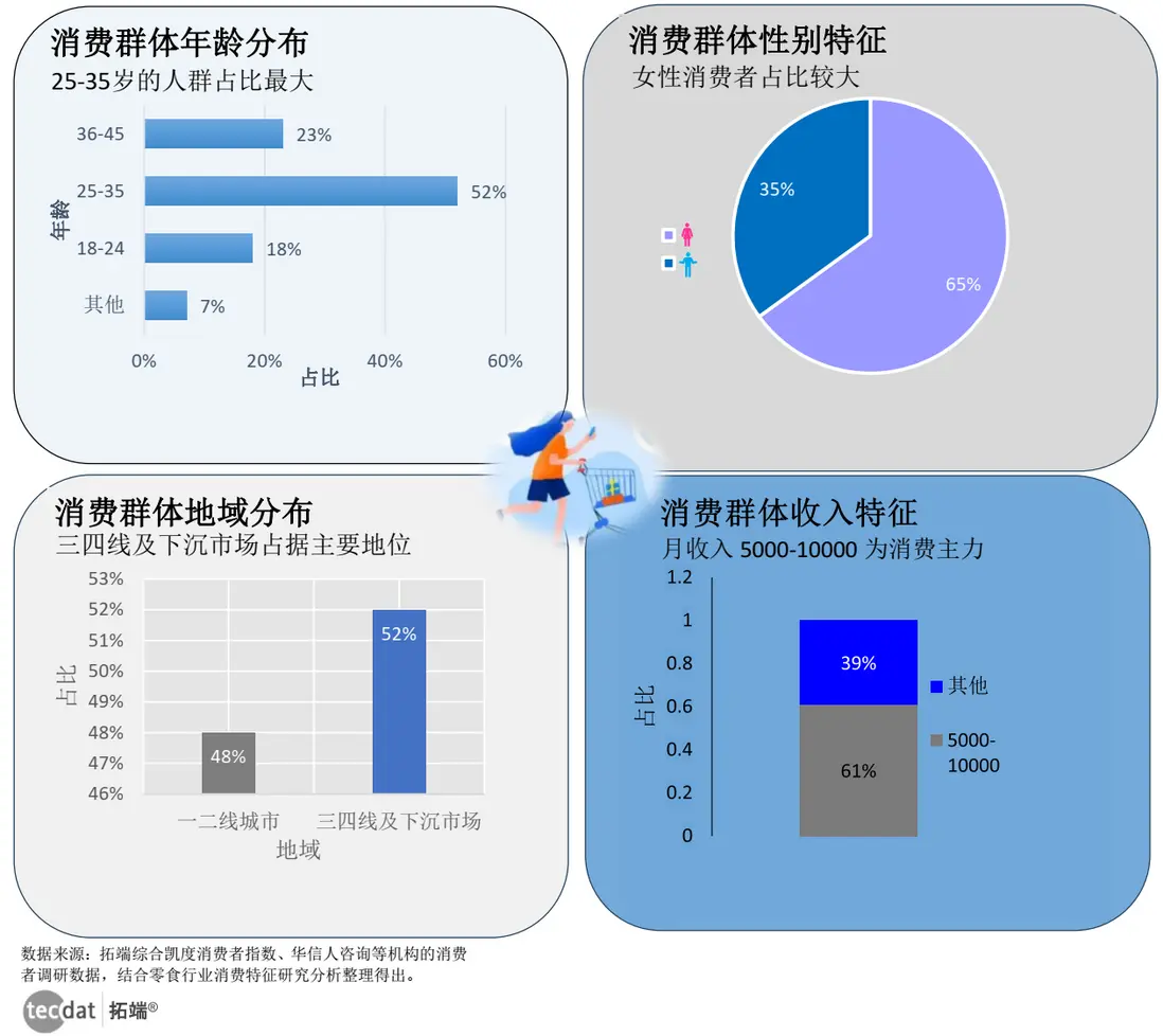 - 地域與收入:一二線城市佔比48%,偏好“高品質、高溢價”產品;三四線及下沉市場佔比52%,注重“性價比”;月收入5000-10000元人羣佔比61%,是消費主力。