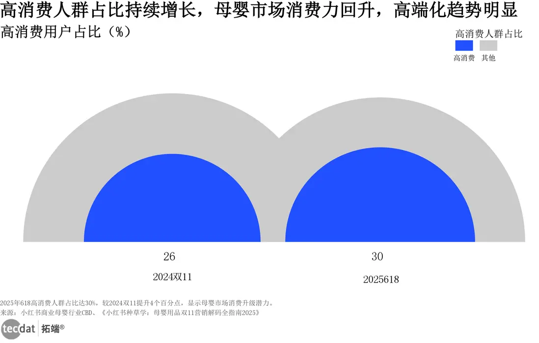 | 雙11高消費人羣佔比 | 未直接統計,僅提及“中高消費人羣TGI高於行業均值” | 2025年618高消費人羣佔比30%,較2024雙11提升4個百分點 | 統計維度不同:月狐用TGI(相對指數),小紅書用絕對佔比 |