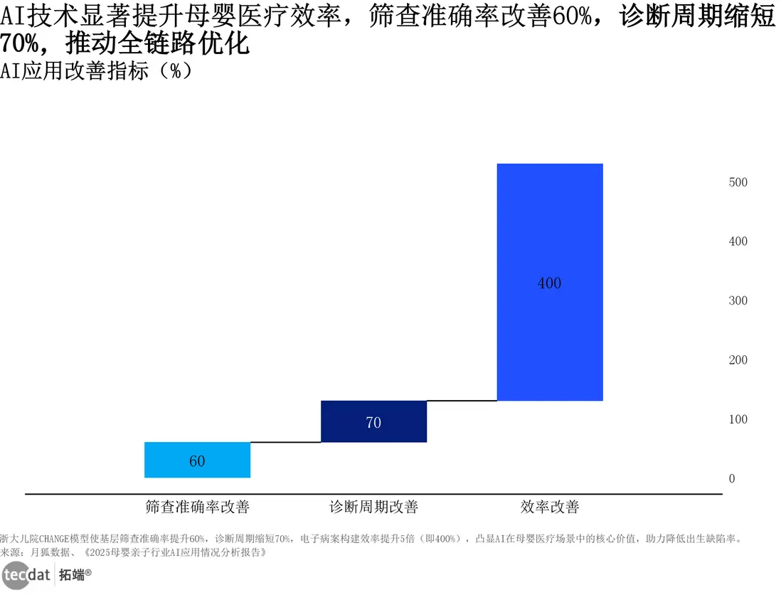 從落地效果看,母嬰AI應用呈現“高覆蓋+高準確率”特徵:孩子王KidsGPT在育兒知識問答場景覆蓋率95%+,能秒回“寶寶吐奶怎麼辦”“輔食添加順序”等高頻問題;叫叫“AI程序員”在代碼編寫、測試用例生成環節普及率100%,內容生產效率提升3倍;浙大兒院CHANGE模型對複雜先心病診斷準確率95.3%,臨牀術語提取準確率超89%——這些數據證明,AI在母嬰“服務、內容、醫療”三大場景已具備實用價值。