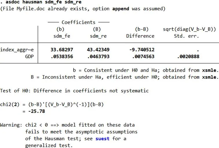 - Hausman檢驗:用於判斷固定效應與隨機效應,空間杜賓模型(SDM)、空間誤差模型(SEM)的Hausman統計量為負,接受隨機效應假設;空間滯後模型(SAR)統計量為正,擬合度最優,初步選定SAR模型。
