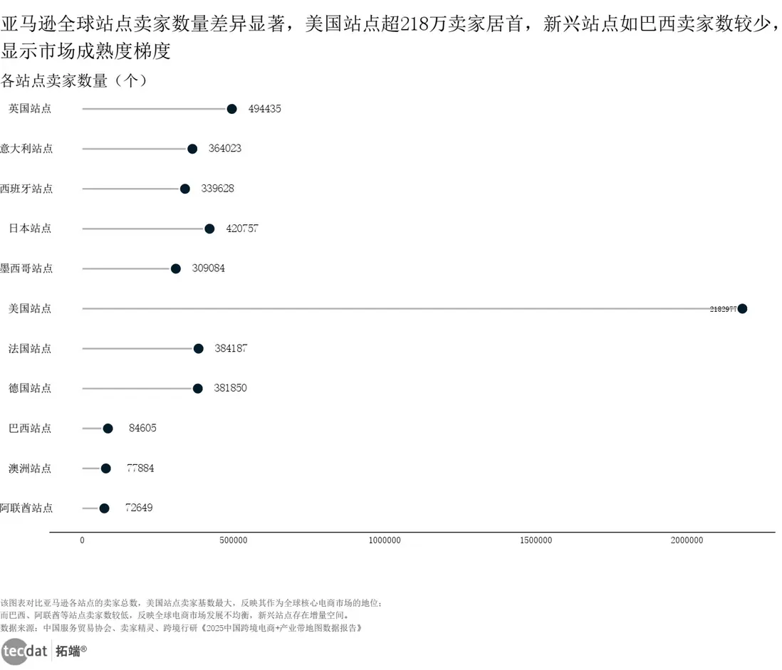 - 亞馬遜全球站點賣家數量對比(刻度線圖)