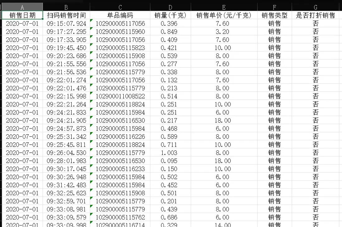 作為數據科學團隊承接的商超運營優化諮詢項目衍生成果,本文聚焦蔬菜銷售預測場景,整合描述性統計、可視化分析與Transformer神經網絡時間序列模型,構建了“數據預處理-特徵分析-單品篩選-精準預測”的完整解決方案。我們從商超真實銷售數據出發,先通過統計與可視化挖掘品類、單品的銷量規律及相關性,再基於歷史數據篩選出高潛力單品,最終用深度學習模型實現未來一週銷量預測,為補貨定價提供可落地的決策依據。整個過程既兼顧業務邏輯的合理性,又突出技術實現的實用性,讓學生和行業從業者都能快速理解並複用。