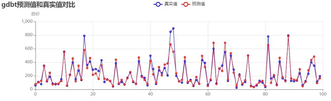 梯度提升樹預測值與真實值對比: