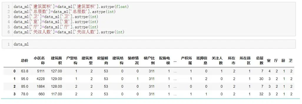 - 從“面積”字段中提取數字,轉換為浮點型用於建模。