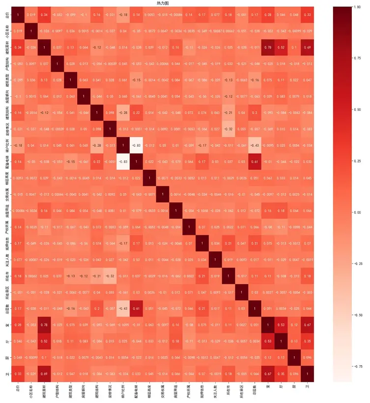 - 特徵相關性分析:通過熱力圖篩選與“總價”相關性較高的特徵,剔除小區名稱、關注人數等相關性較低的特徵,優化建模特徵集。