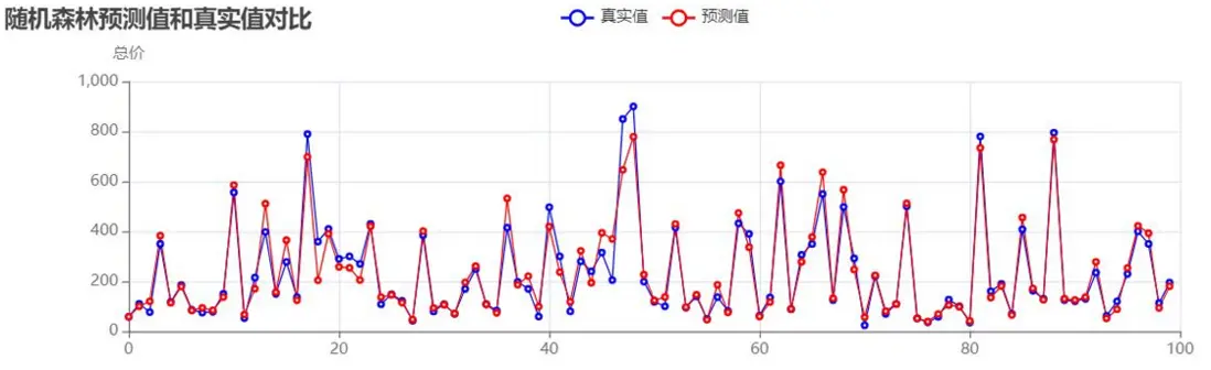 隨機森林預測值與真實值對比: