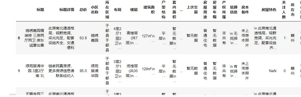 三個城市的原始數據採用相同提取邏輯,因此清洗流程保持一致,以下以贛州數據為例説明核心步驟: