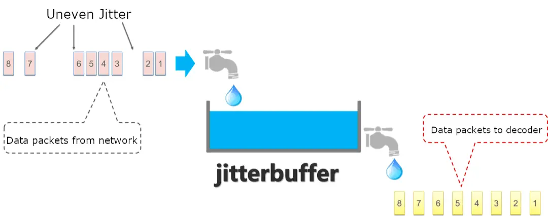 簡單來説,抖動緩衝區充當一個水庫,在將不均勻的數據包均勻地交付給解碼器進行解碼之前進行緩衝。