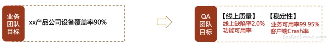 | 誰擁有對目標的主導權,我們團隊還是其他團隊 | 你的團隊應該對該目標有主導權 | QA團隊主導,推進整體產品研發達成 |