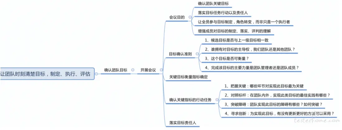 | 完成該目標的主要力量是團隊管理者還是團隊成員 | 如果一個目標過多依賴團隊管理者,團隊成員就容易失去對這個目標的興趣 | 一線的項目測試同學 |