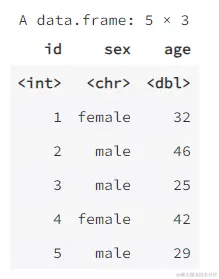 sex = c("male", "female", "male", "male", "female"),