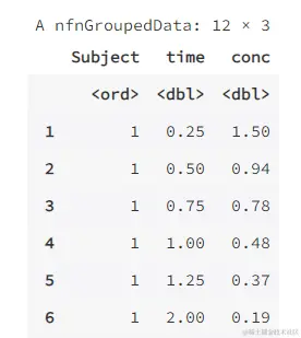 head(Indometh,12) # 這裏增加一行,預覽數據前 12 行,方便對比