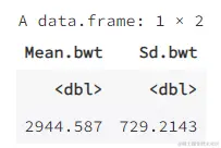 summarise(birthwt, Mean.bwt = mean(bwt), Sd.bwt = sd(bwt))