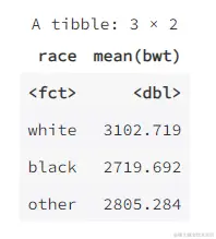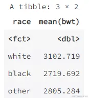 birthwt.group <- group_by(birthwt1, race)