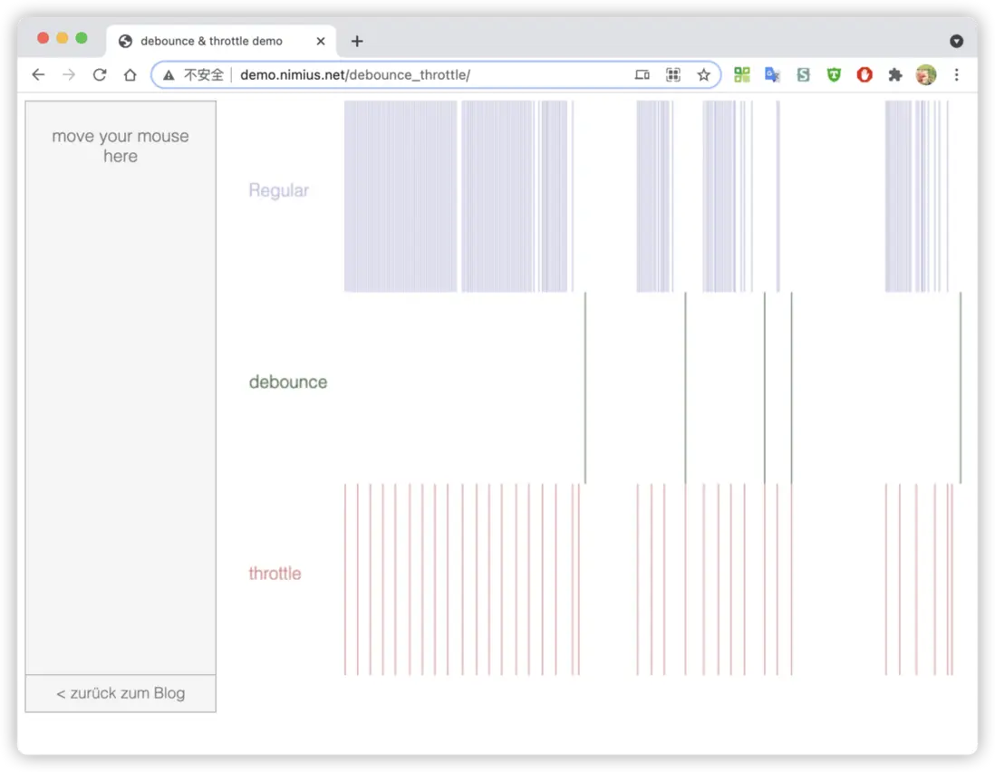 如果還是不太明白 debounce 和 throttle 的差異,可以在以下這個頁面,可視化體驗。