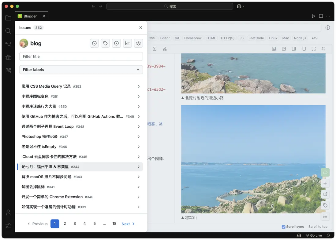 用了一段時間,發現有些地方不太順手、有一些 Bug,作者也很久沒更新了。然後就二次開發了,修了一些 Bug,加了一些新功能,於是 GitHub Blogger 誕生了。