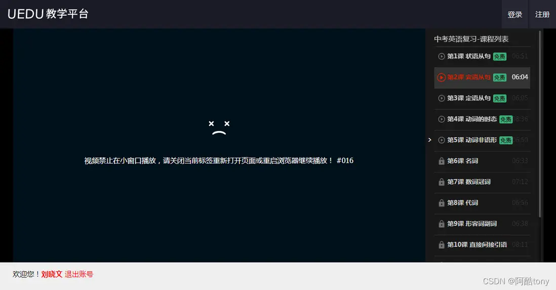 視頻播放到某個時間點,彈出問答播放器,只有答題正確,提交後才能繼續觀看,增加了錄屏的難度,提高錄屏成本,降低了盜版視頻的觀看體驗。