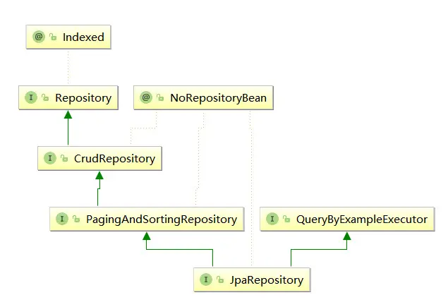 Spring Data抽象封裝的核心接口是Repository,它將Domain(領域)類或者Domain類的ID類型作為類型參數進行管理,通過進一步的繼承處理提供各種功能,例如CrudRepository提供了基本的CRUD功能。