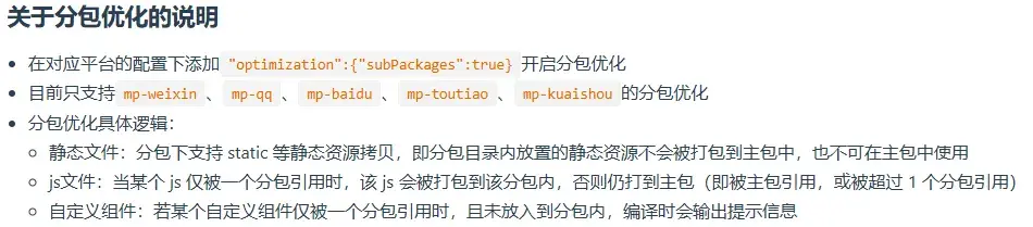 "packages": ["subPackages/setting"] // 進入指定頁面後需要加載的分包 root 或 name