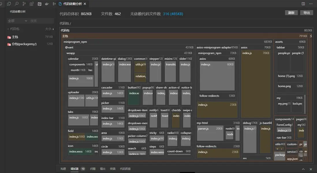 你可以在這裏查看當前項目的分包大小和依賴分析