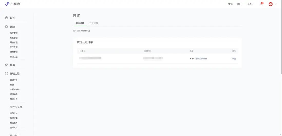 可能你在開發中還無需微信認證這一步,但上架是需要的,到這裏基本的認證就結束了,然後是開發層面的。