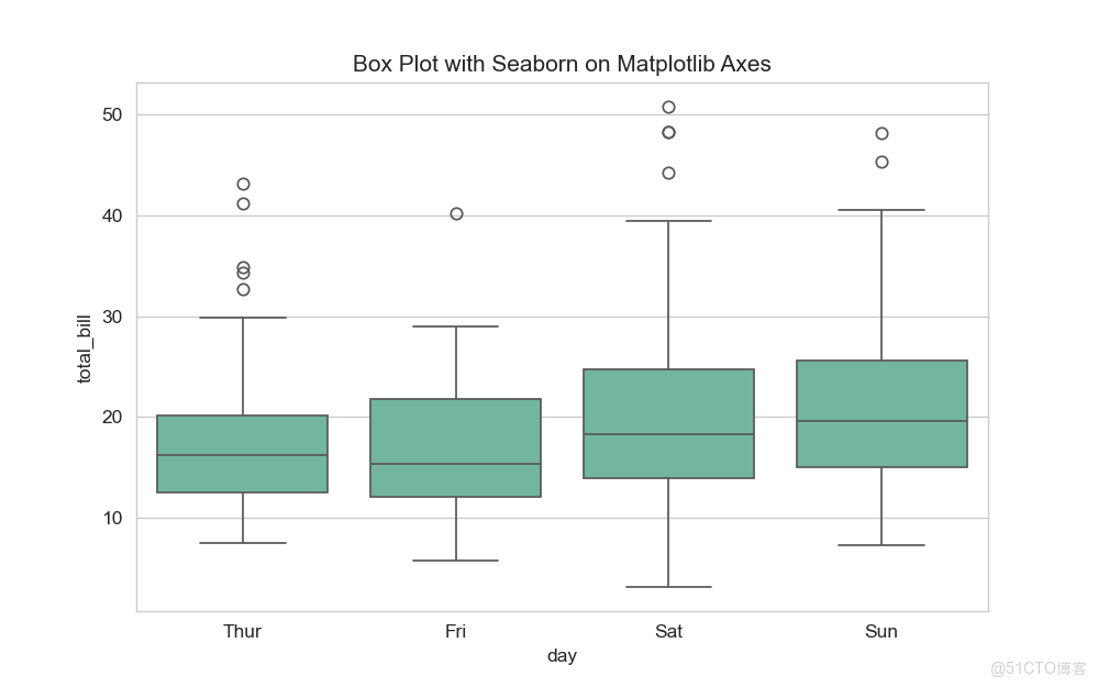 ax.set_title("Box Plot with Seaborn on Matplotlib Axes")