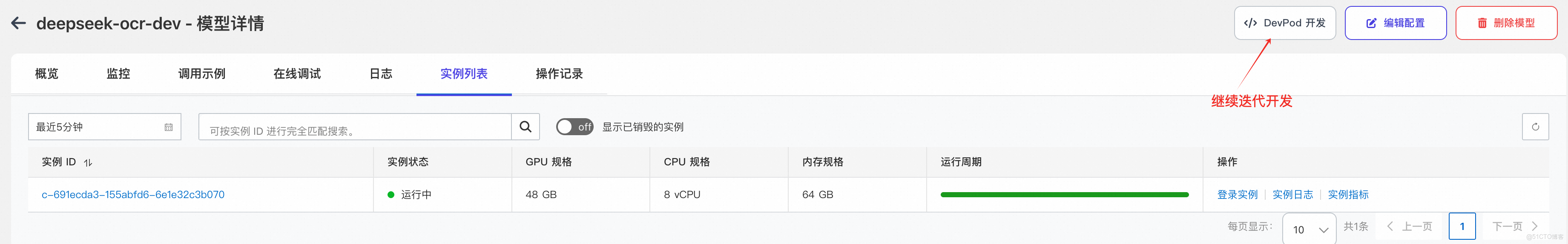 DevPod 通過統一的工作空間和無縫銜接的部署能力,打通了從代碼到服務的最後一公里。下面,我們將通過 DeepSeek-OCR 模型的實戰案例,完整演示這一工作流。