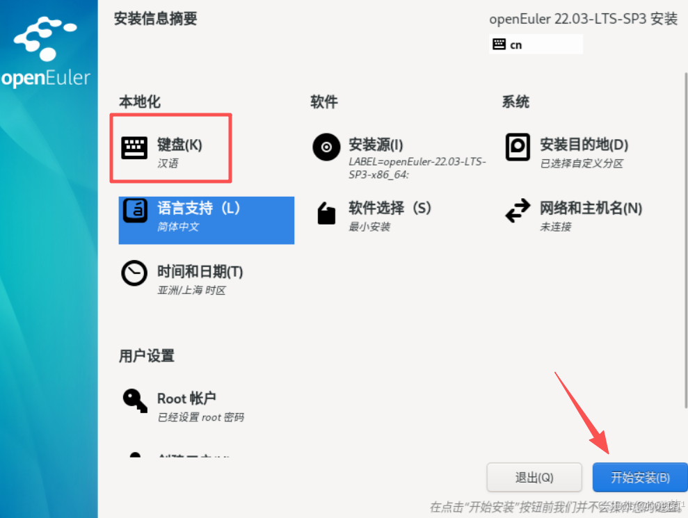 第一步:Install openEuler 22.03-LTS-SP3