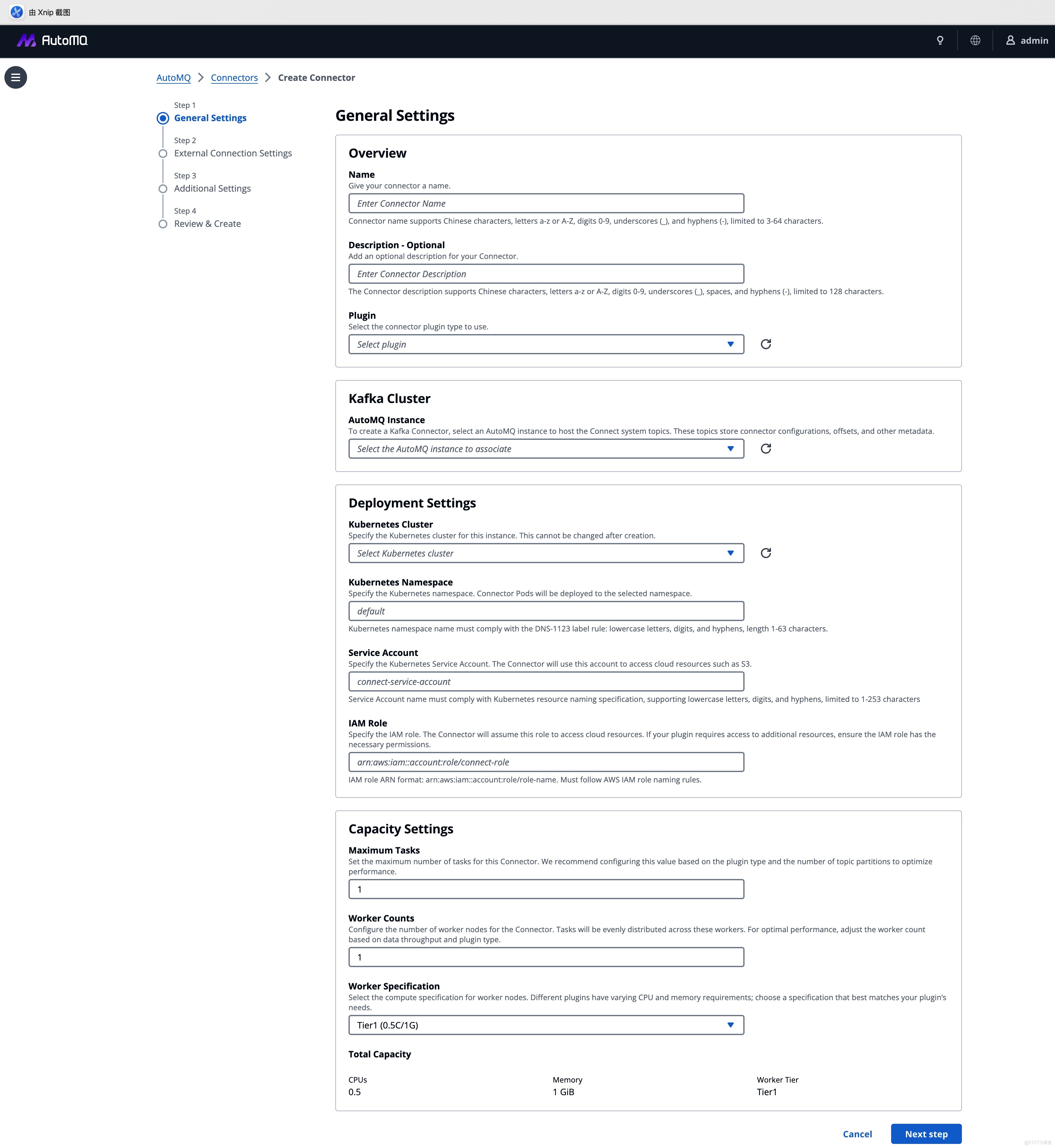 這是集成的起點。用户只需選擇目標 AutoMQ 實例和 Kubernetes 集羣,系統會自動鎖定正確的網絡上下文和 IAM 角色。“選擇即適配”,複雜的連接參數配置在後台自動完成。