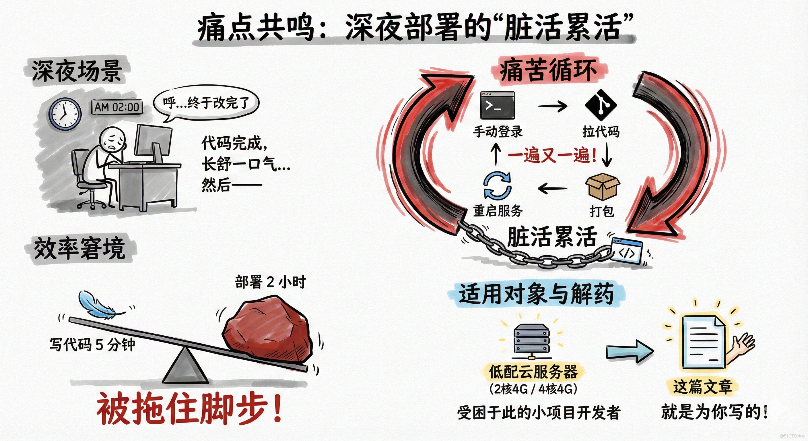 如果你也受困於這種“寫代碼5分鐘,部署兩小時”的窘境,而且手頭只有一台2核4G或4核4G的低配雲服務器,那這篇文章,就是為你寫的。