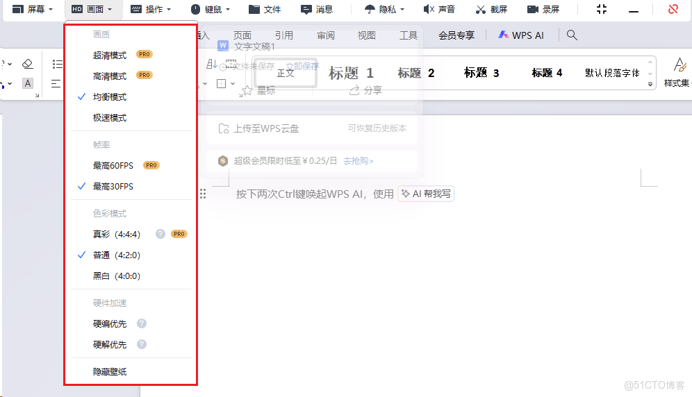 AnyViewer 最高支持 60 幀,支持模式有超清,高清,均衡,極速。