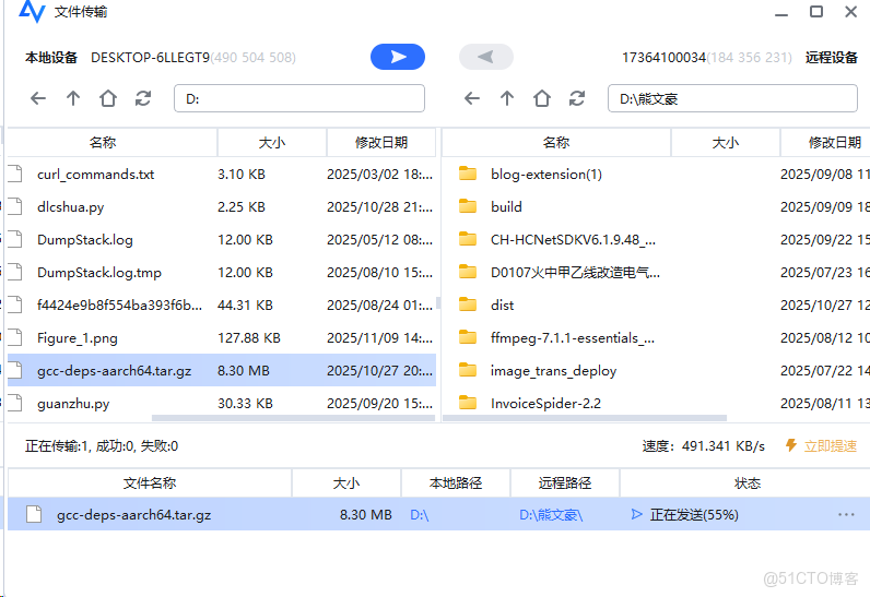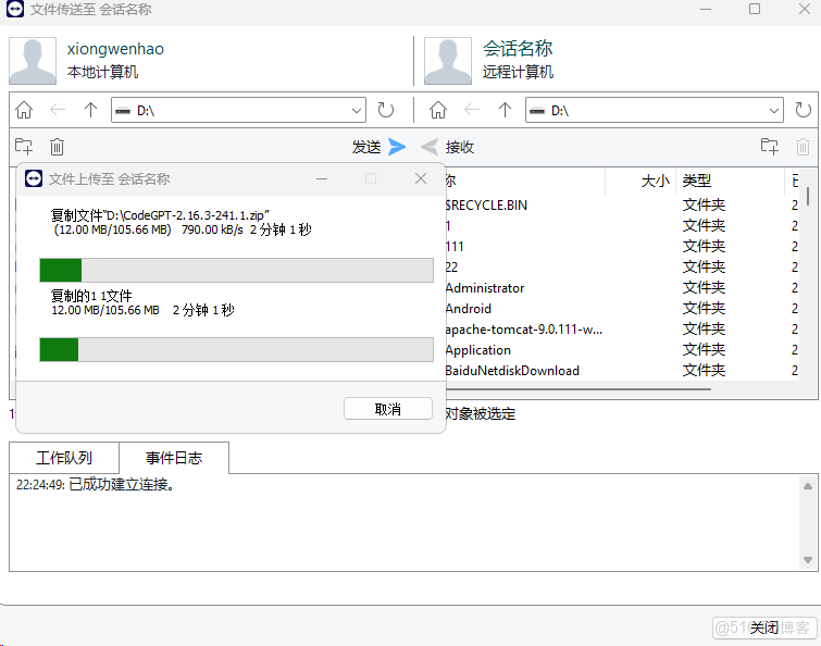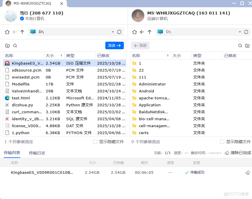 實測傳輸 2.54GB 大文件,總耗時 6 分鐘,平均速度7MB/s。支持斷點續傳、拖拽傳輸、批量操作。