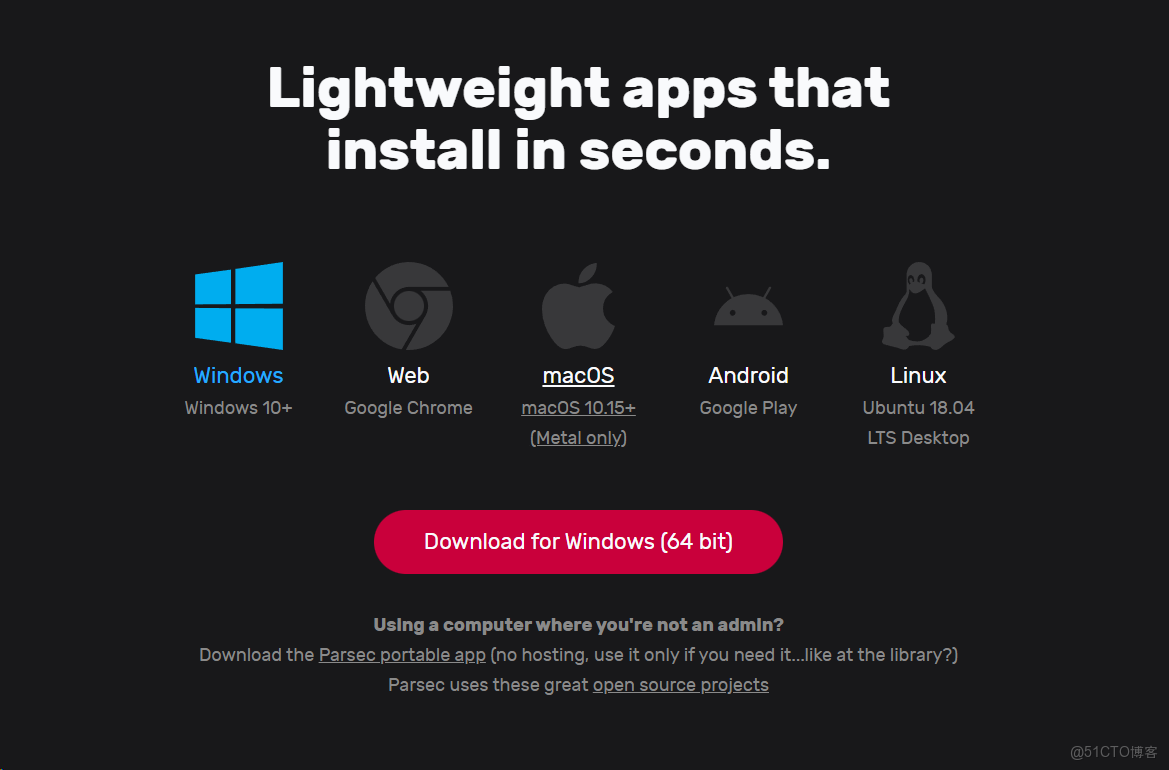 Parsec 是全英文界面的,可支持 Windows,Web,macOS,Android,Linux