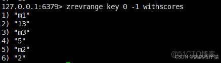 zrevrange返回指定區間⾥的元素,分數按照降序。帶上 WITHSCORES 可以把分數也返回。
