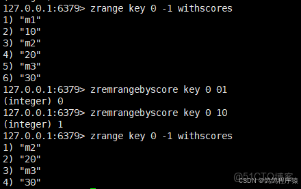 zremrangebyscore按照分數排序,升序刪除指定範圍的元素,左閉右閉。