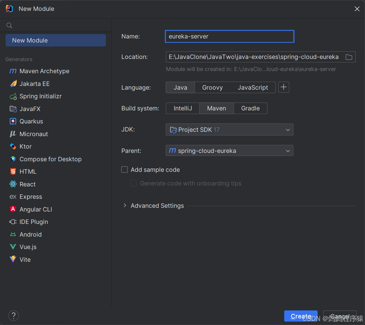 - 創建Eureka-server ⼦模塊
