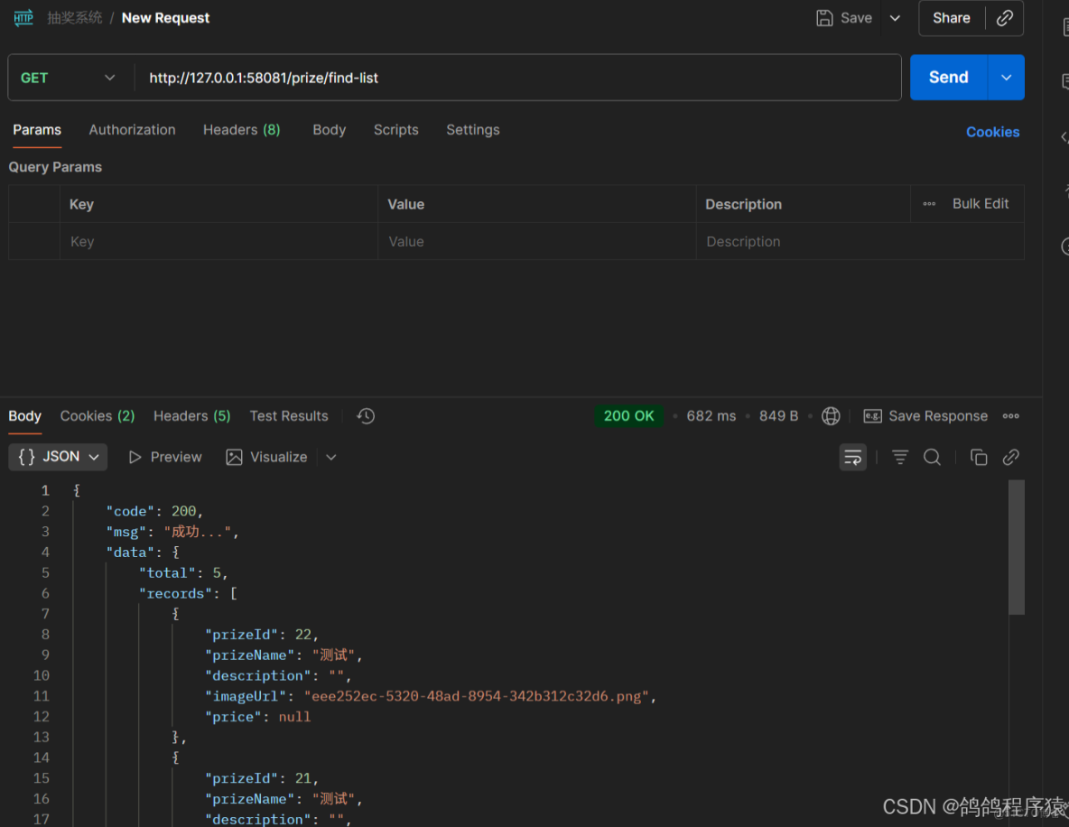 - 根據接口規範的響應內容,包含 total(當前獎品總數)和 records(當前獎品列表)