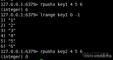 rpushx在 key 存在時,將⼀個或者多個元素從左側放⼊(頭插)到 List 中。不存在,直接返回