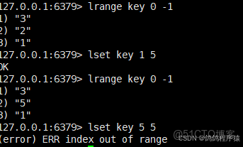 時間複雜度:O(N) 返回值:成功修改OK,下標越界報錯(error) ERR index out of range