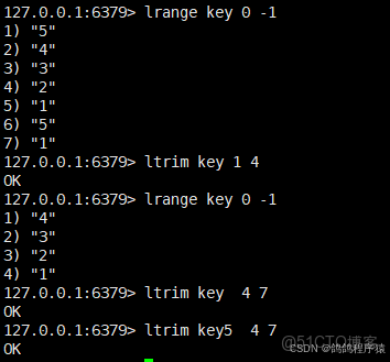 ltrim 保留區間 start 和 stop 區間(左閉右閉)的元素,其餘元素全部刪除。