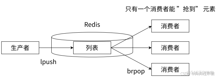 Redis 可以使⽤ lpush + brpop 命令組合實現經典的阻塞式⽣產者-消費者模型隊列,⽣產者客⼾端使⽤ lpush 從列表側插⼊元素,多個消費者客⼾端使⽤ brpop 命令阻塞式地從隊列中"爭搶" 隊⾸元素。通過多個客⼾端來保證消費的負載均衡和⾼可⽤性。