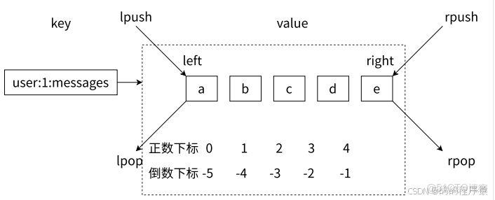 lrange獲取從 start 到 stop 區間的所有元素,左閉右閉,越界的下標不返回元素。