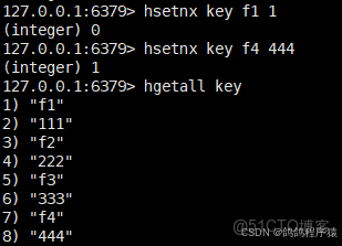 hsetnx在字段不存在的情況下,設置 hash 中的字段和值。