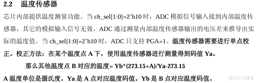 温度的換算: 測量內部温度時,需要先校準再測量,芯片沒有出廠校準,必須用兩個已知温度點進行標定。注意:測量温度時,AIN+、AIN- 對外引腳無效,即採集不了輸入信號。