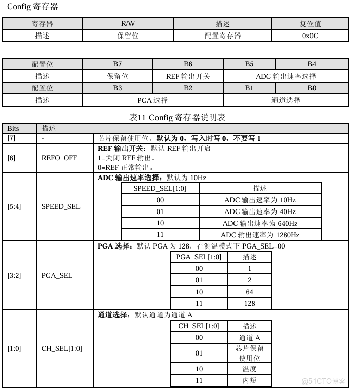 讀寫參數配置,需要通過7bits 命令字去配置。 CS1237只有一組Config寄存器