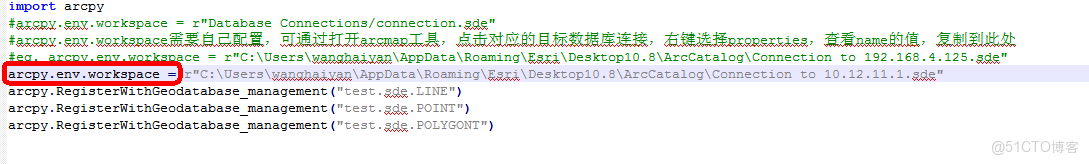 acrpyRegisterWithGeodatabase.py文件,將上一步複製的內容粘貼到以下位置,保存文件。