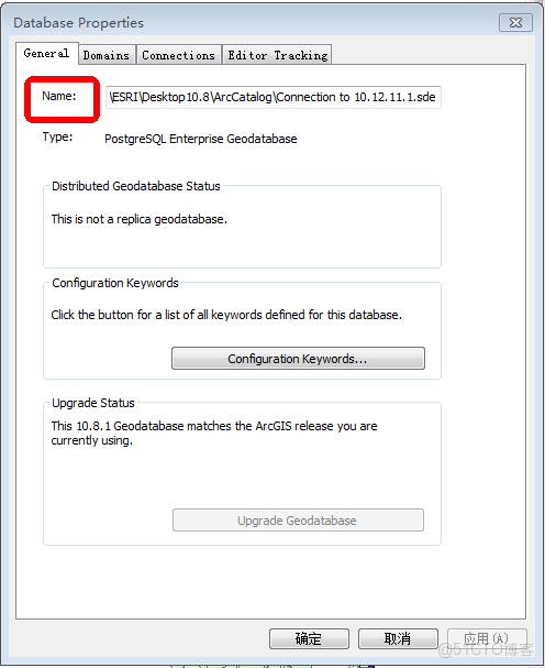 - 查看 ArcMap 的 kingbase 數據庫連接信息,並複製下來。